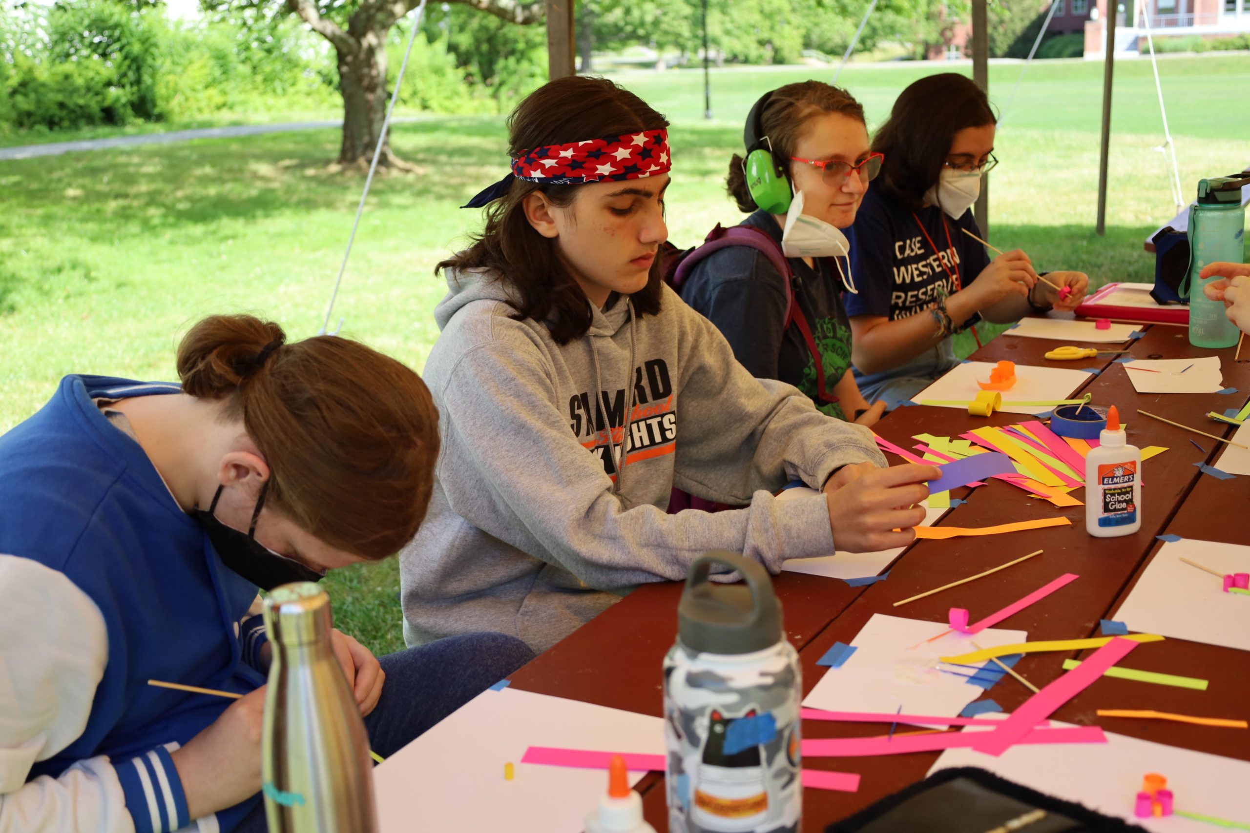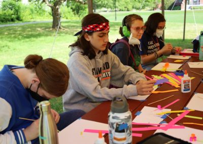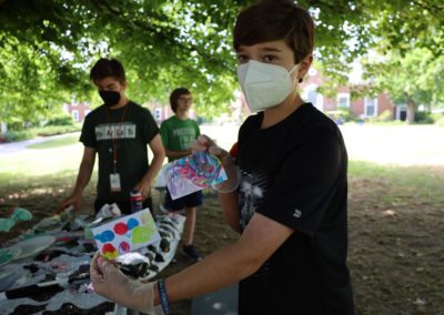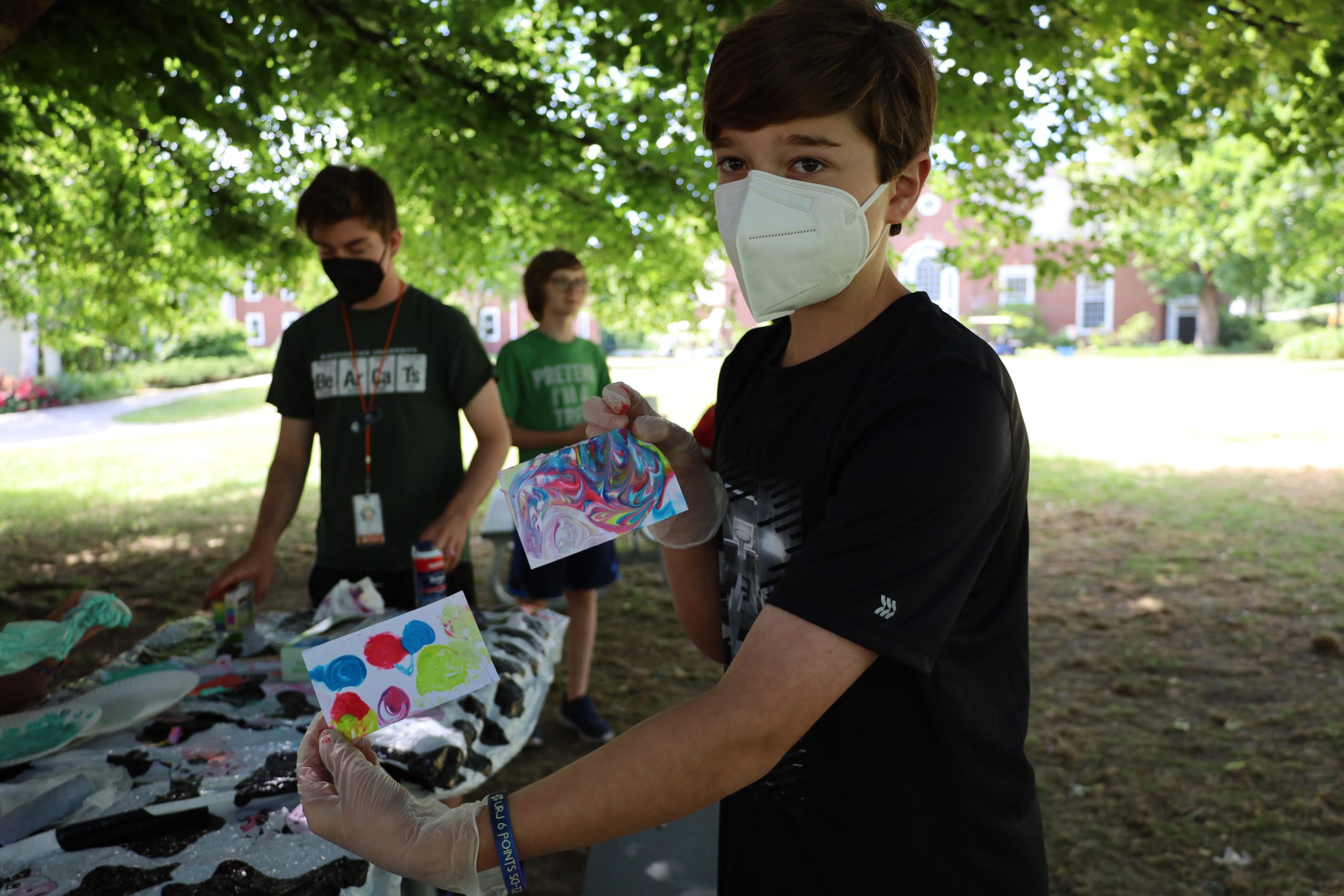 Quilling and bubble painting has been a favorite in the Arts & Crafts chug. Campers are building a portfolio with a new project each day. In the Chemistry chug, meanwhile, one experiment was painting with dyed shaving cream.